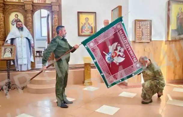 За інформацією, отриманою з пропагандистських ресурсів РФ, окупанти впевнені, що новостворене “військо” є “справжнім та православним”, а “хоругву” навіть освятили священники РПЦ.