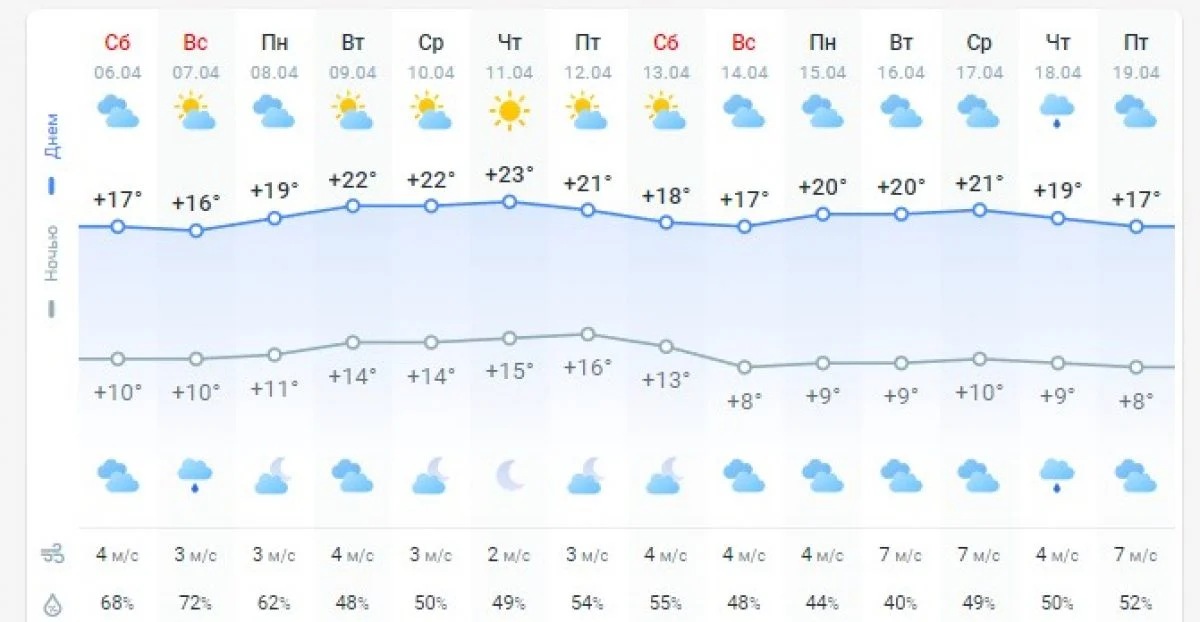 “Температура по області вночі 5-9° тепла, вдень 14-19°; у Києві вночі 7-9° тепла, вдень 16-18°”, – повідомляє Укргідрометцентр.